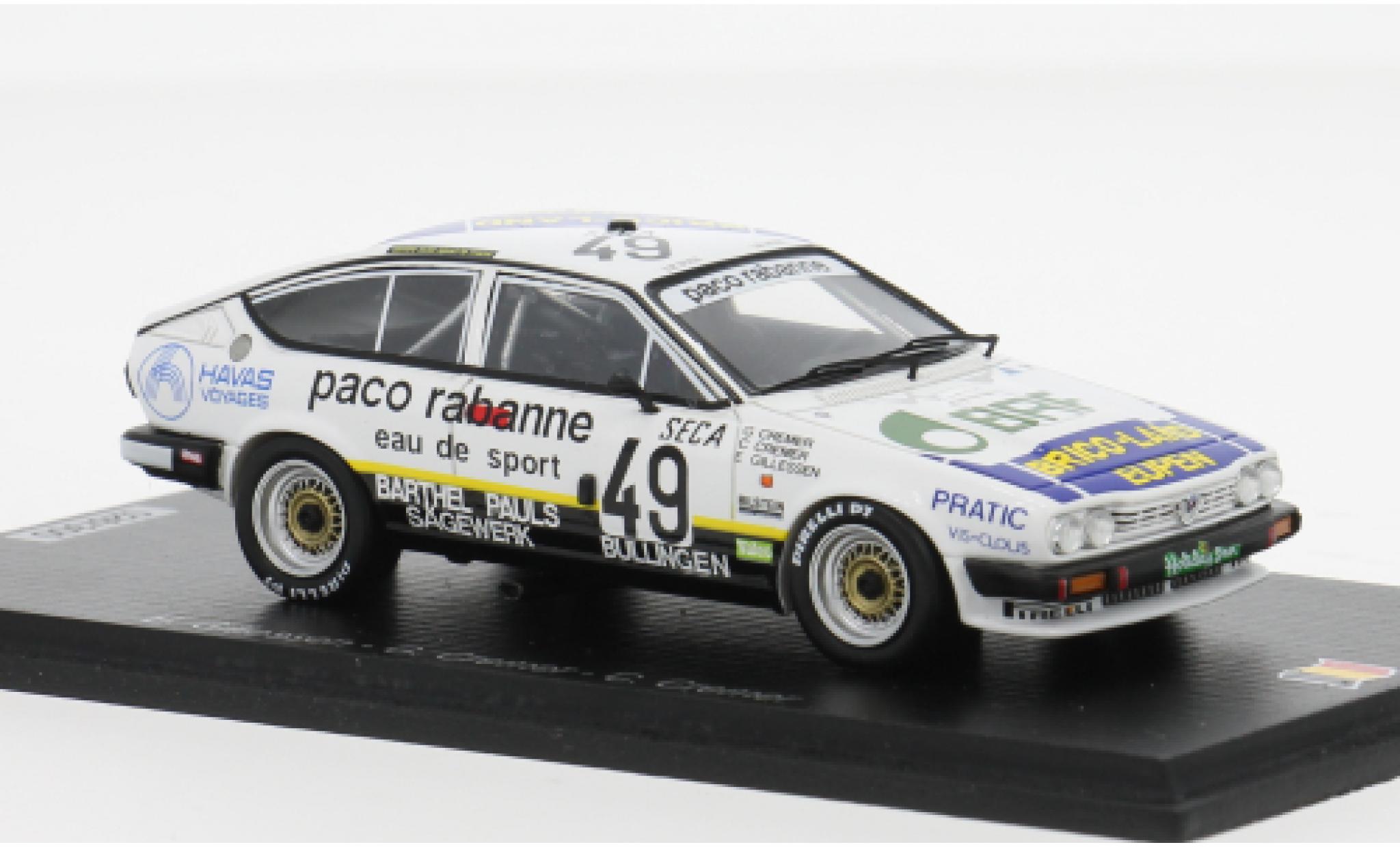 VOUS ETES ICI : VOITURE MINIATURE > ALFA ROMEO MINIATURE > ALFA ROMEO GT MINIATURE > Alfa Romeo GT 1/43 Spark V 6 24h Spa 1986 #49 1:43