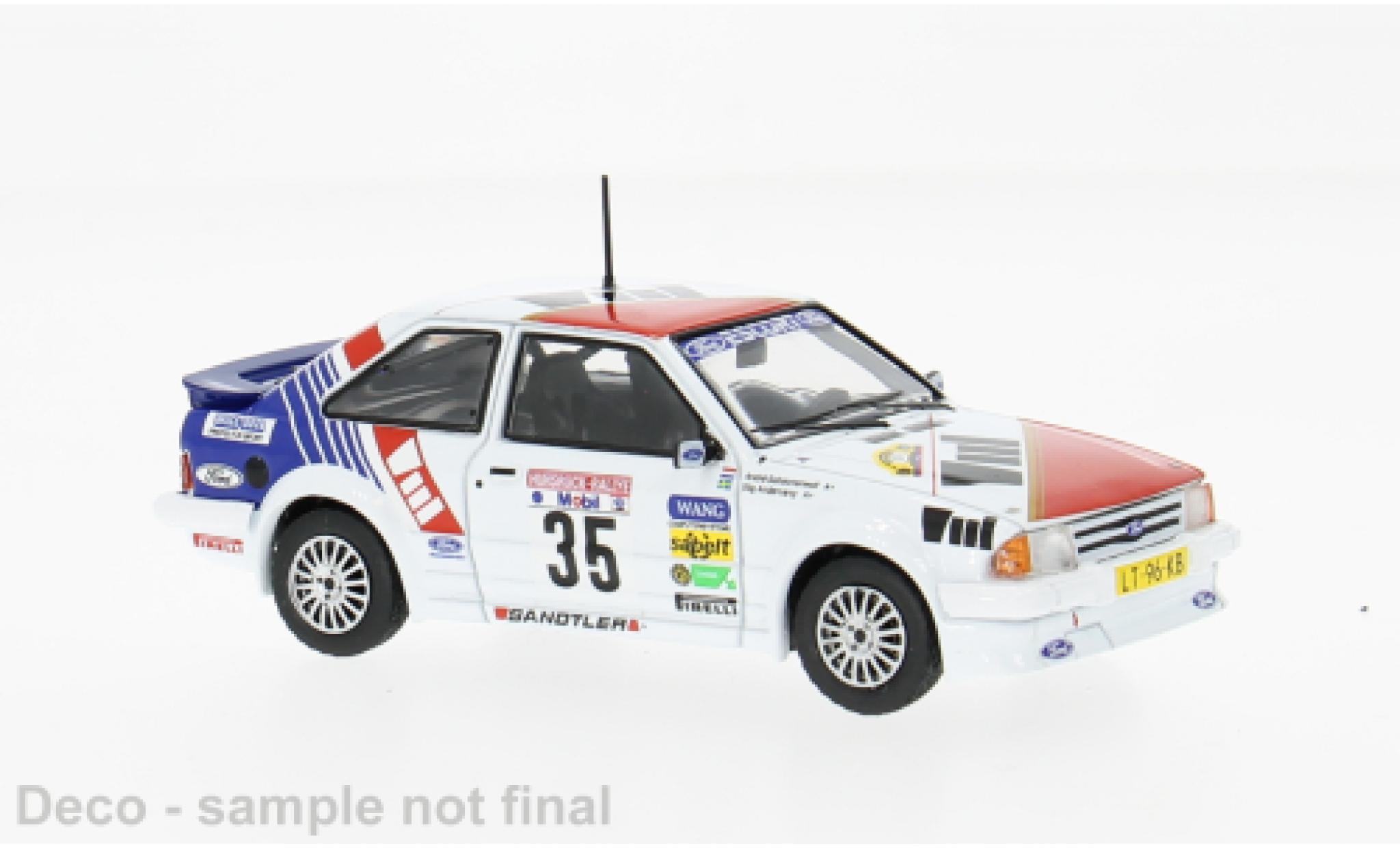 VOUS ETES ICI : VOITURE MINIATURE > FORD MINIATURE > FORD ESCORT MINIATURE > Ford Escort 1/43 IXO MK III RS Turbo Hunsrück Rallye 1985 #35 S.Andervang/A.Schoonenwolf 1:43