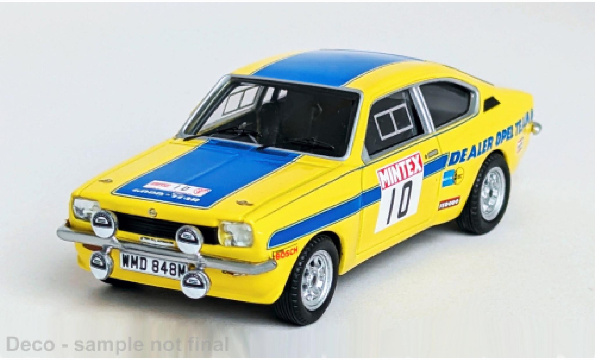 VOUS ETES ICI : VOITURE MINIATURE > OPEL MINIATURE > OPEL KADETT MINIATURE > Opel Kadett 1/43 Trofeu GT/E Rally Mintex Dales 1975 Dealer Team #10 T.Fall/M.Wood 1:43
