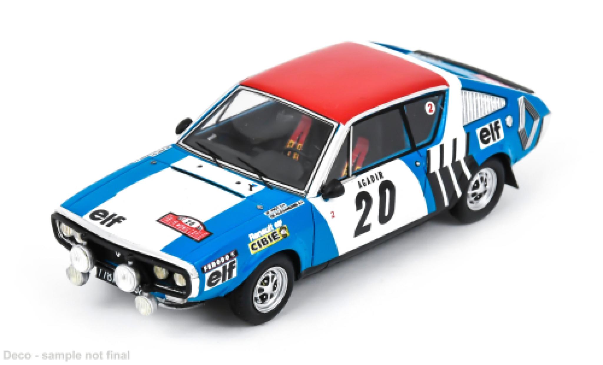 VOUS ETES ICI : VOITURE MINIATURE > RENAULT MINIATURE > RENAULT 17 MINIATURE > Renault 17 1/43 Spark Rally Monte Carlo 1975 #20 J.F.Piot/J.De Alexandris 1:43