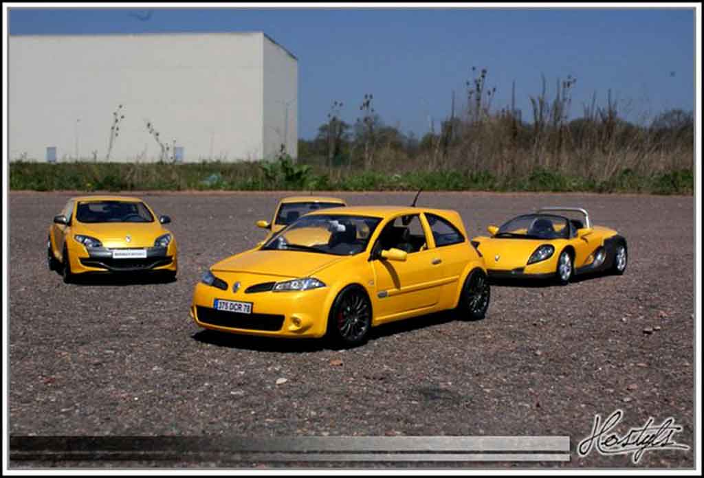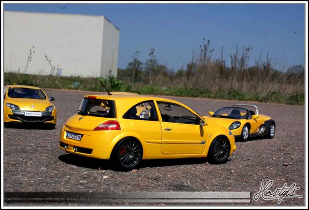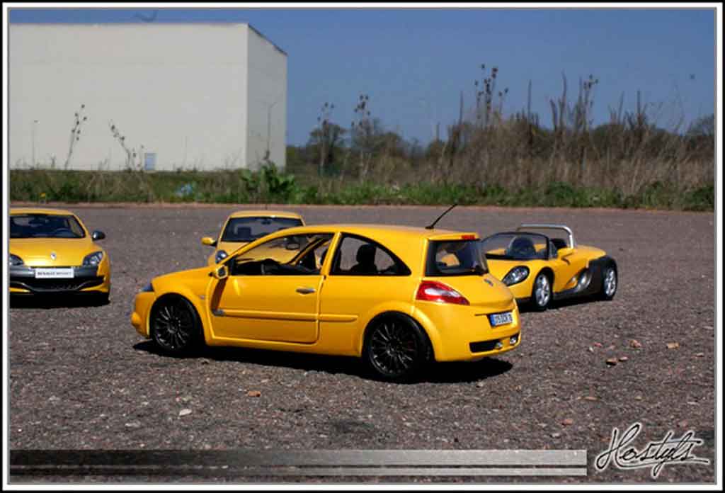 VOUS ETES ICI : VOITURE MINIATURE > RENAULT MINIATURE > RENAULT MEGANE MINIATURE > RENAULT MEGANE RS MINIATURE > Renault Megane Sport 1/18 Burago Sport rs jaune siryus