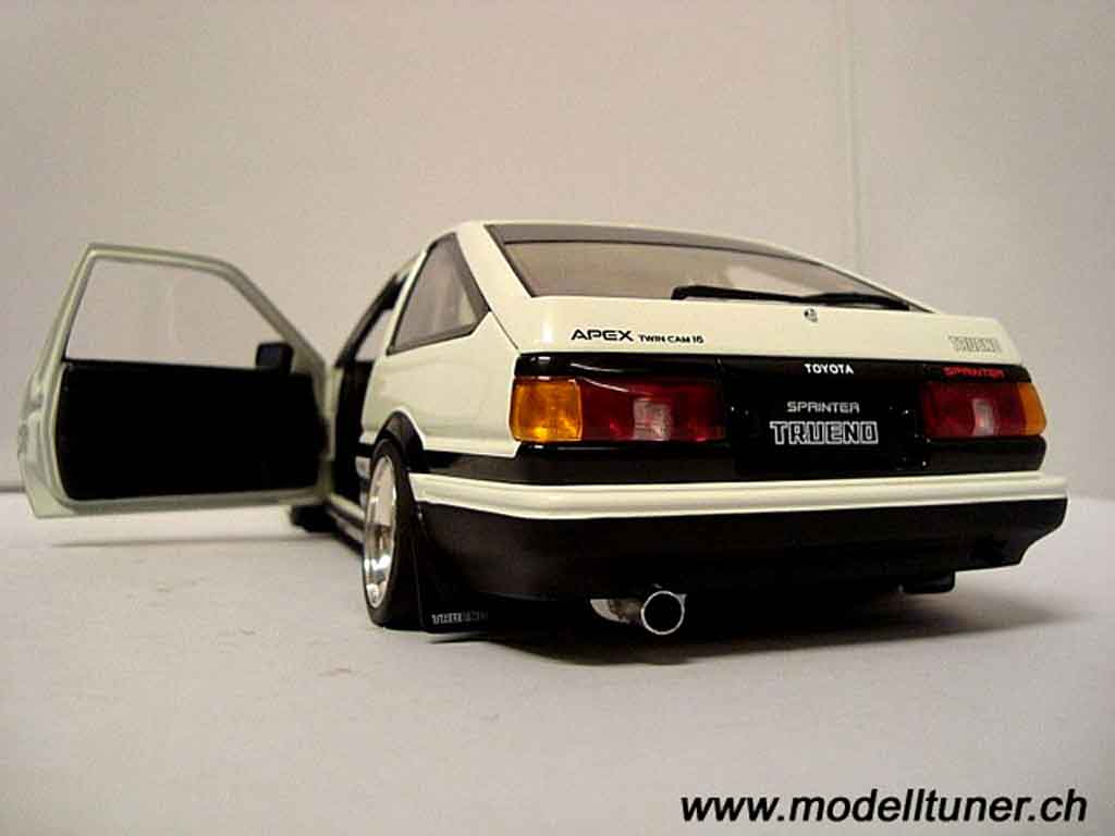 représente 18 sur la véritable Toyota Trueno. Ainsi une Toyota Trueno miniature à l'échelle 1/18 mesure environ 25